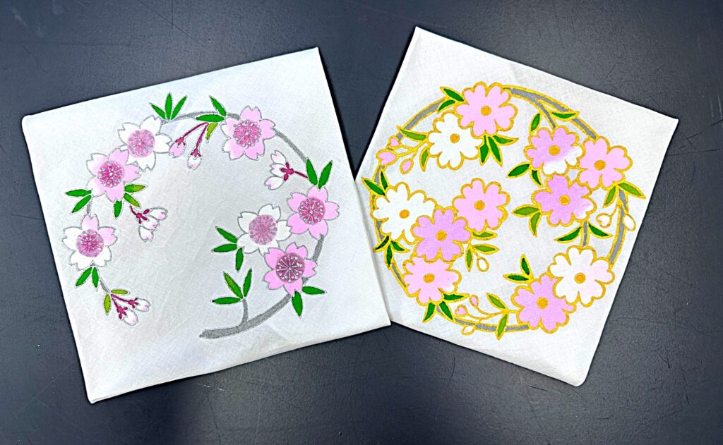 日本の民族衣装である着物の染色工房を見学し、友禅染物の作成の仕方を学びます。その後、体験では、実際にハンカチーフに染色を体験することができます。ご自身で作成した作品はそのまま持ち帰ることができます。
